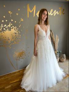 Was MOMENTE von anderen Brautladen unterscheidet, ist die außergewöhnliche Vielfalt und die sorgfältige Auswahl an Kleidern. Es handelt sich um ein Outlet, in dem regelmäßig neue Kleidungsstücke eingetroffen sind. Neben den gebrauchten Kleidern gibt es auch eine Auswahl an hochwertigen Second Hand Kleidern.